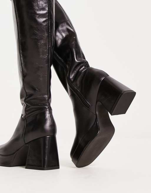 Topshop Holly Bottes montantes en cuir de qualit sup rieure semelle plateforme Noir Very well made.