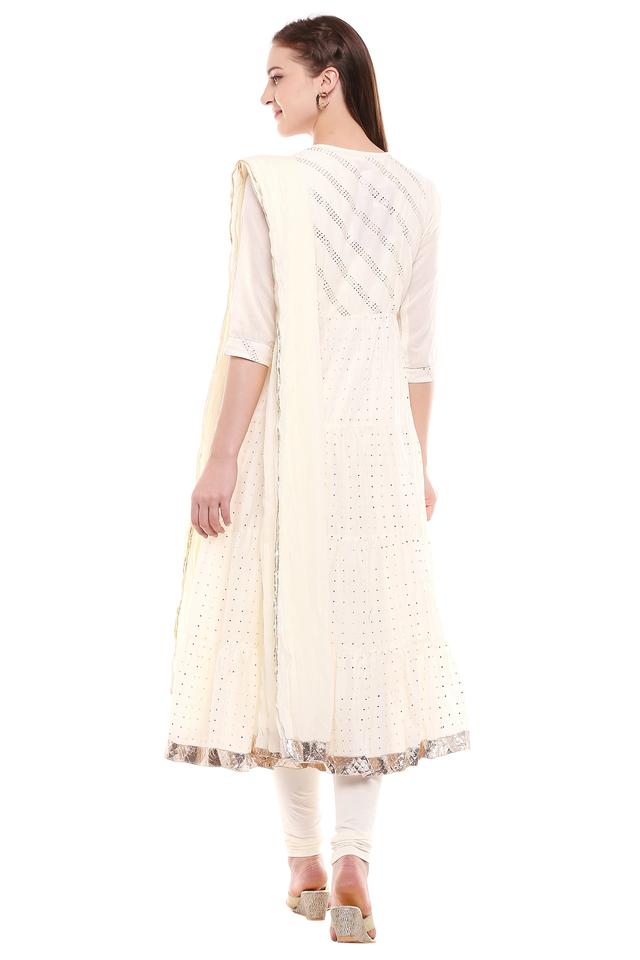 Buy BIBA Off White Womens Round Neck Embellished Churidar Suit Very well made.