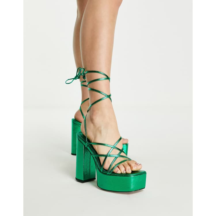 Simmi London Sia strappy platform heels in metallic green Very well made.