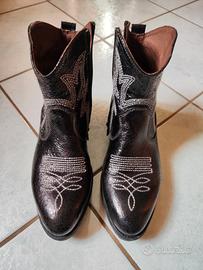 STIVALI TEXANI IN pelle nero giardini usati con scatola Very well made.