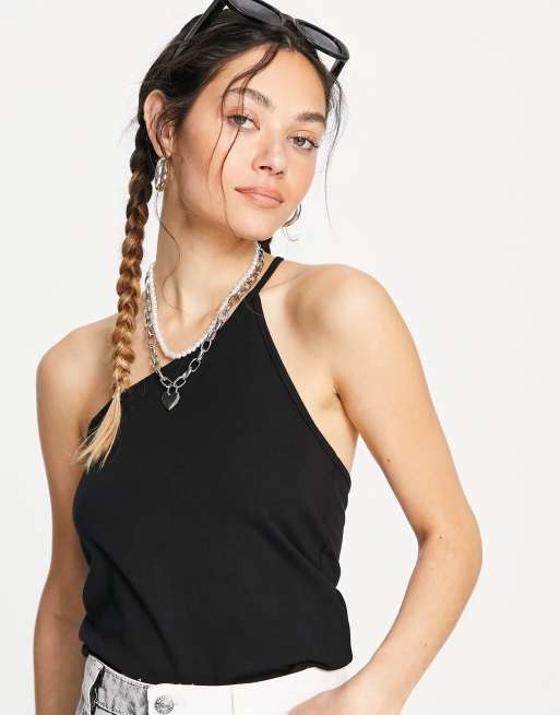 Black One Shoulder Rib Vest Top Very well made.