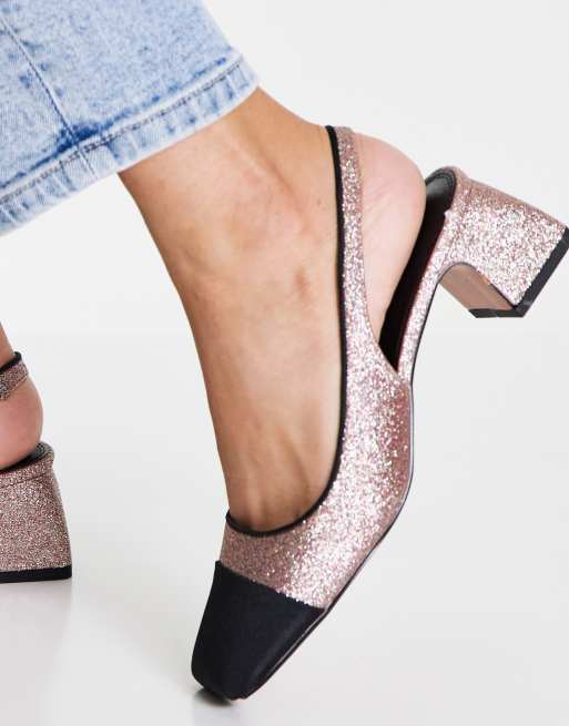 ASOS DESIGN Sally toe cap slingback block heeled shoes in glitter Very well made.