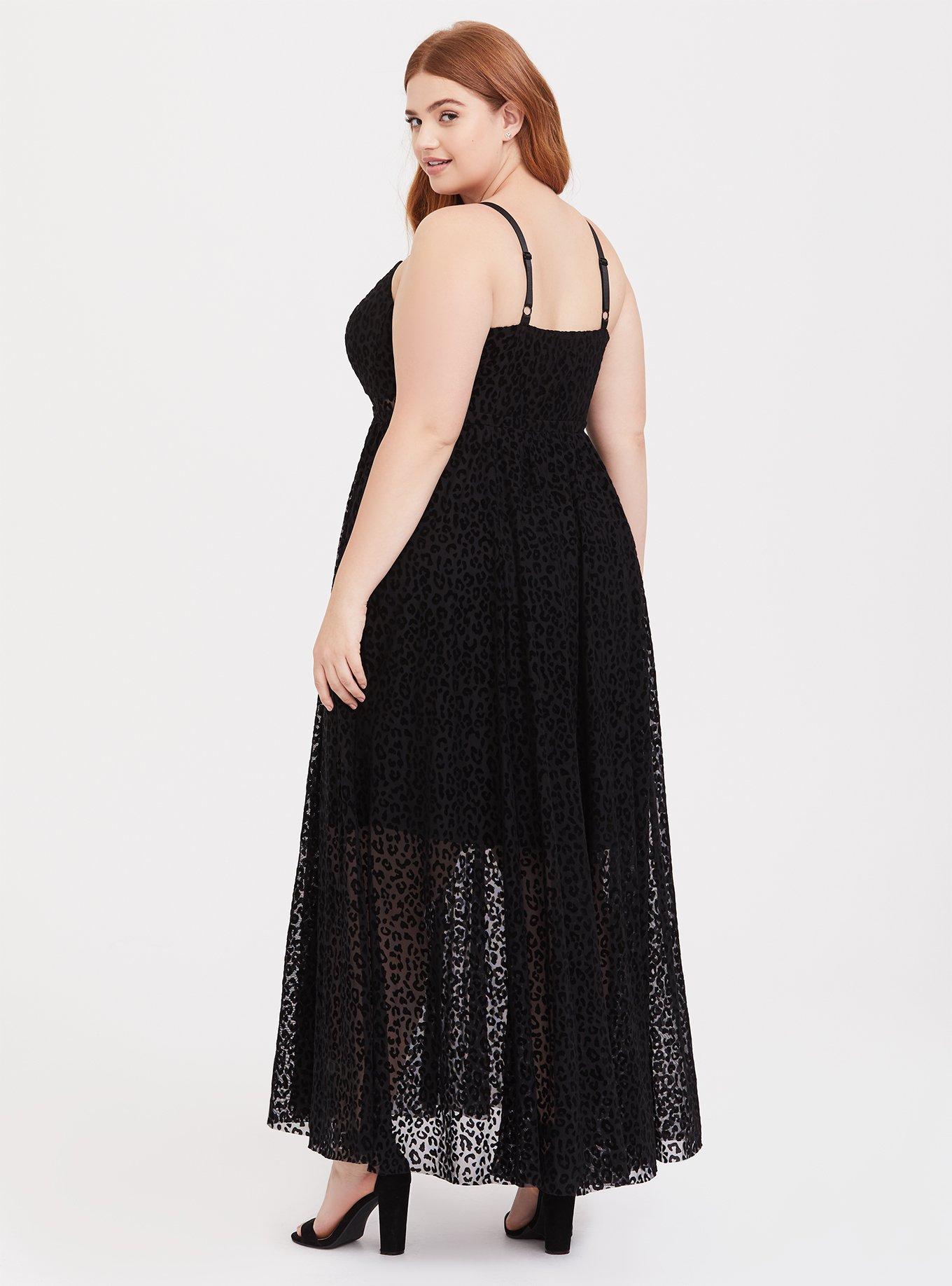 Plus Size Special Occasion Black Flocked Leopard Mesh Maxi Dress Very well made.