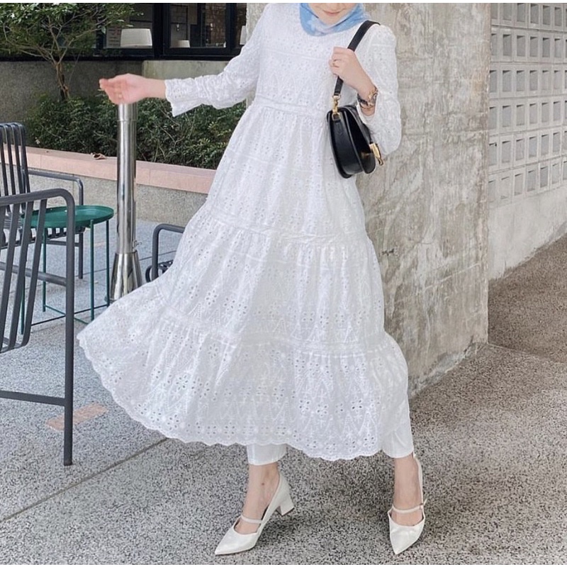 Athalia dress in cream Inner full length sleeves for hijab Very well made.